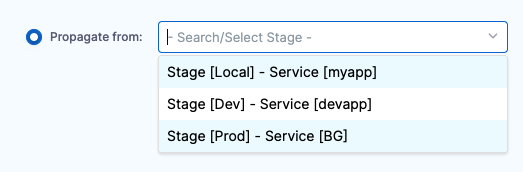 You can use the same CD stage services across your pipeline stages. Once you have added a stage with a service, you can select the same service in subsequent stages by using the Propagate from option.