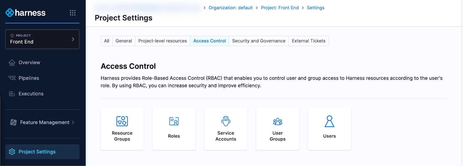- Use this guide to become familiar with the initial RBAC settings applied to your new Harness account.