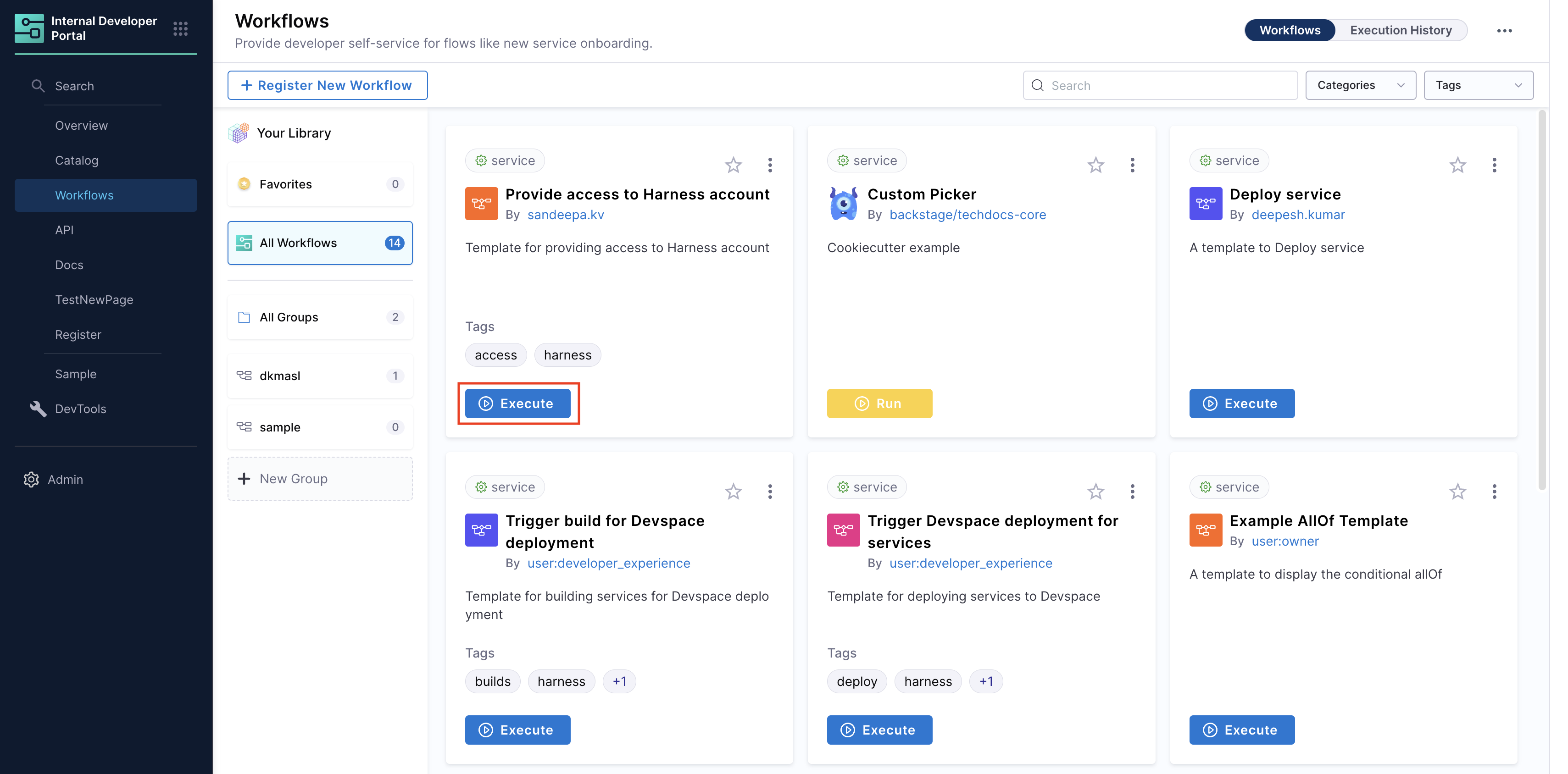 Managing Workflows in Harness IDP