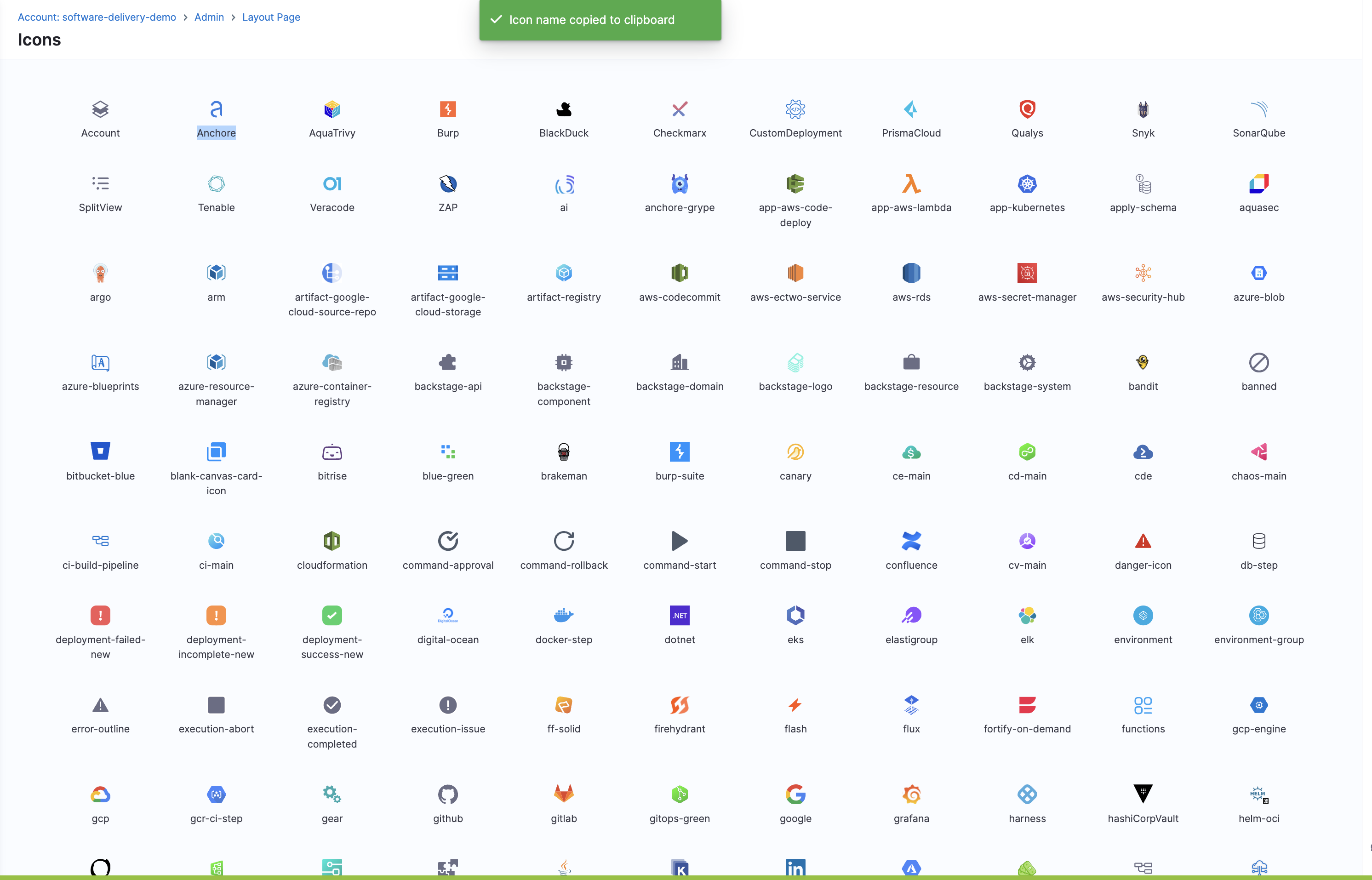 - Go to Icons under IDP-Admin -> Layout, and highlight the icon name you want to add, it will be copied, and now you can add it under the