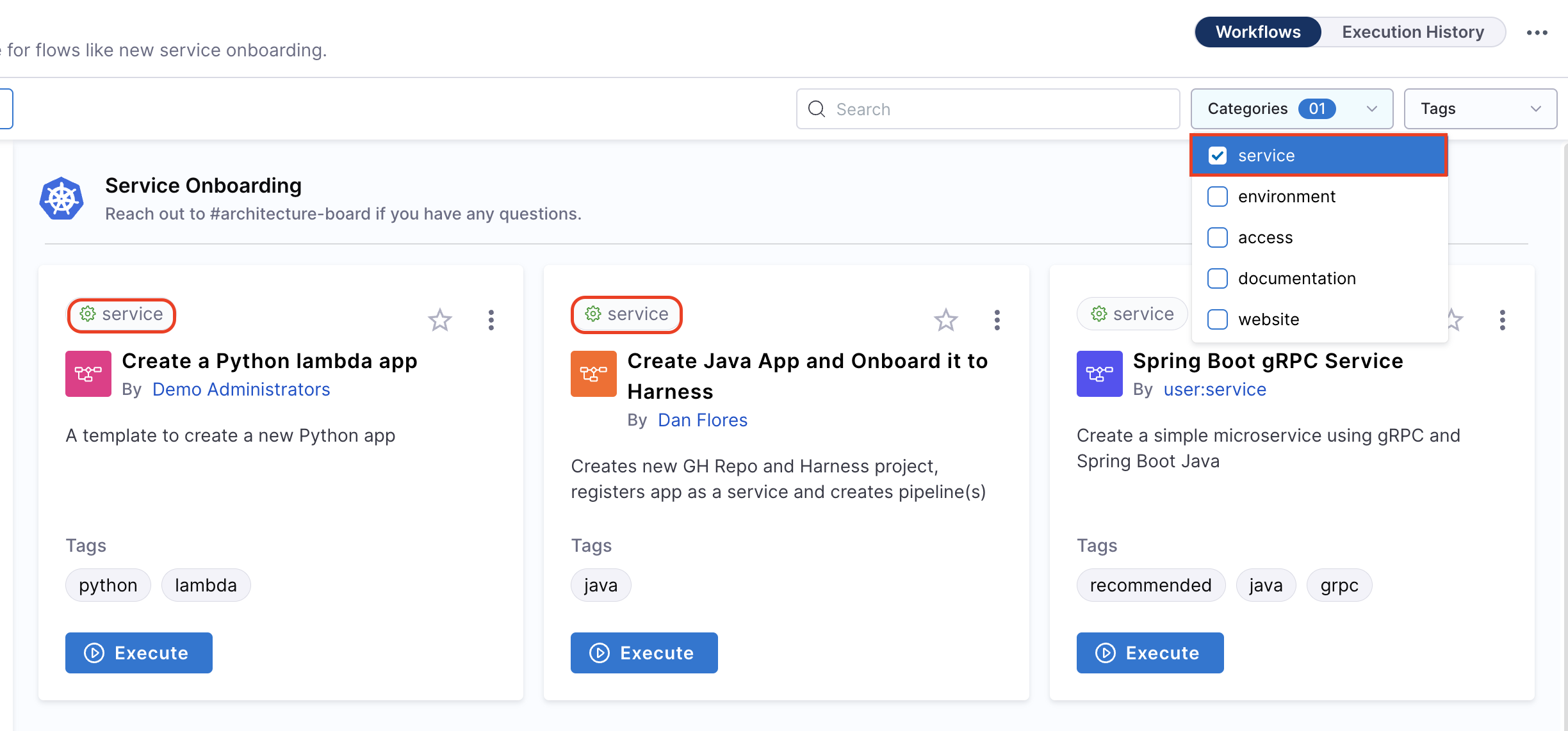 - Tags & Categories: You can filter workflows based on tags and categories. Category is defined by