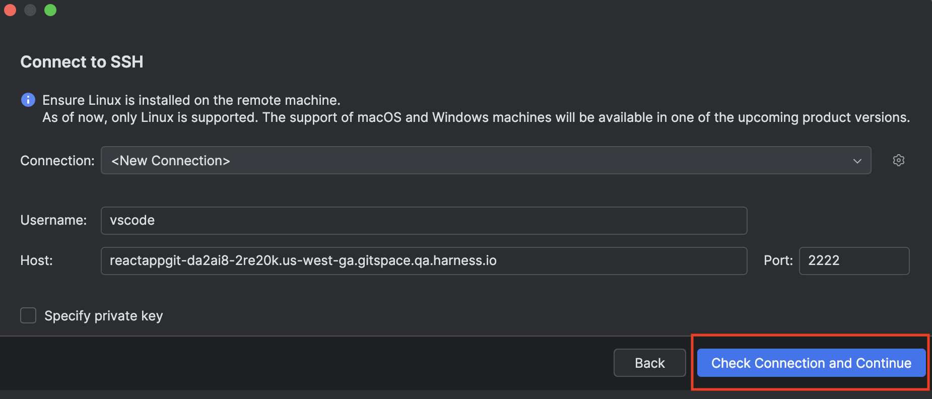 With GoLand IDE support, Harness CDE enables seamless and efficient remote development in your Gitspaces with your IDE. This integration leverages JetBrains Gateway to establish a direct remote connection with GoLand IDE, eliminating the need for any prior setup.