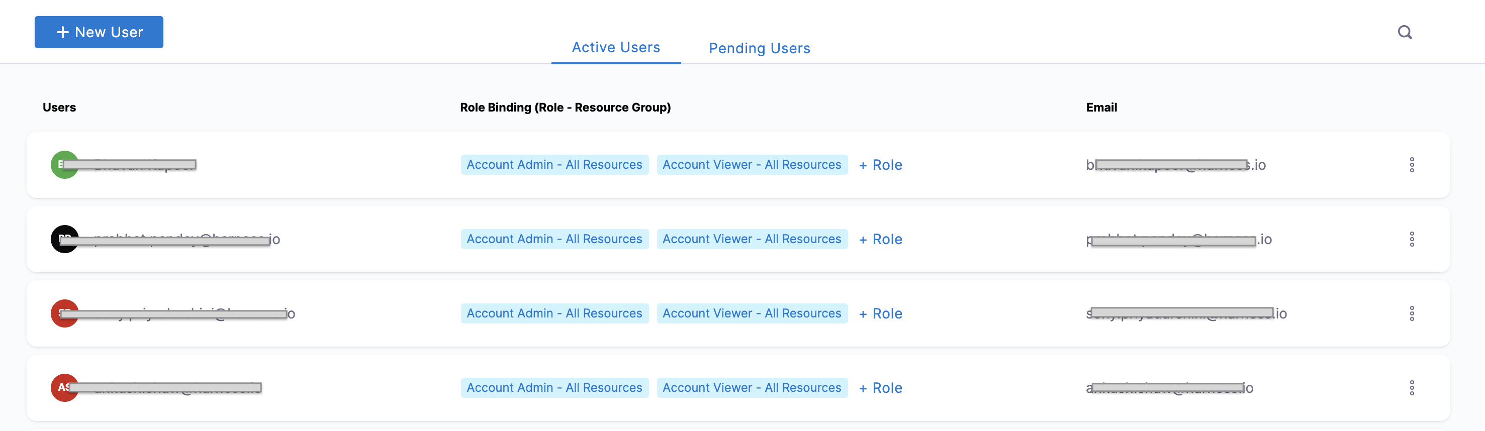 In the Users tab, we can see the list of all the Active Users and their Email.