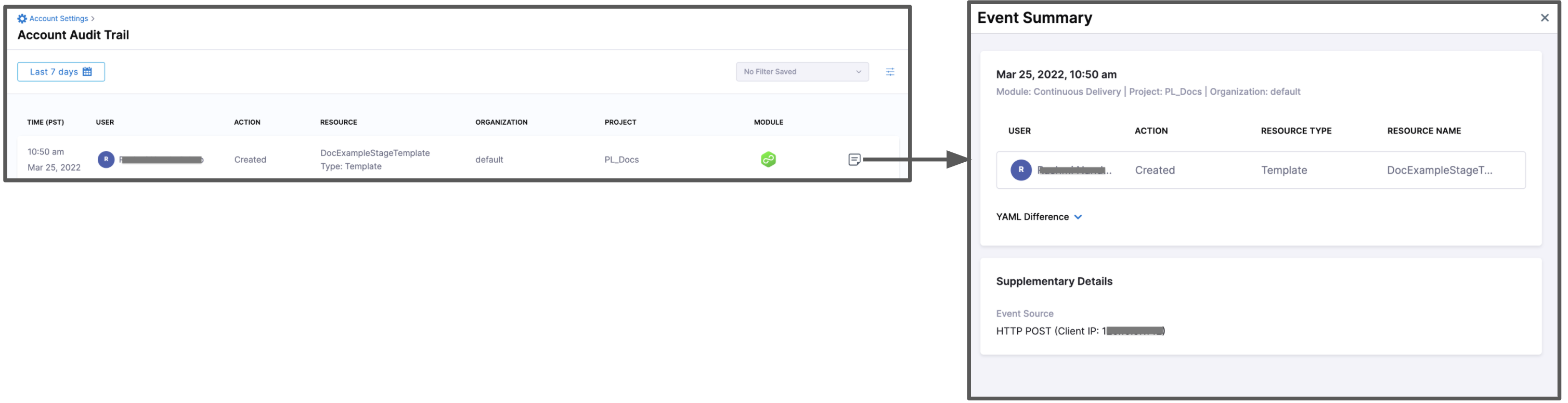 Event Summary with YAML difference.
