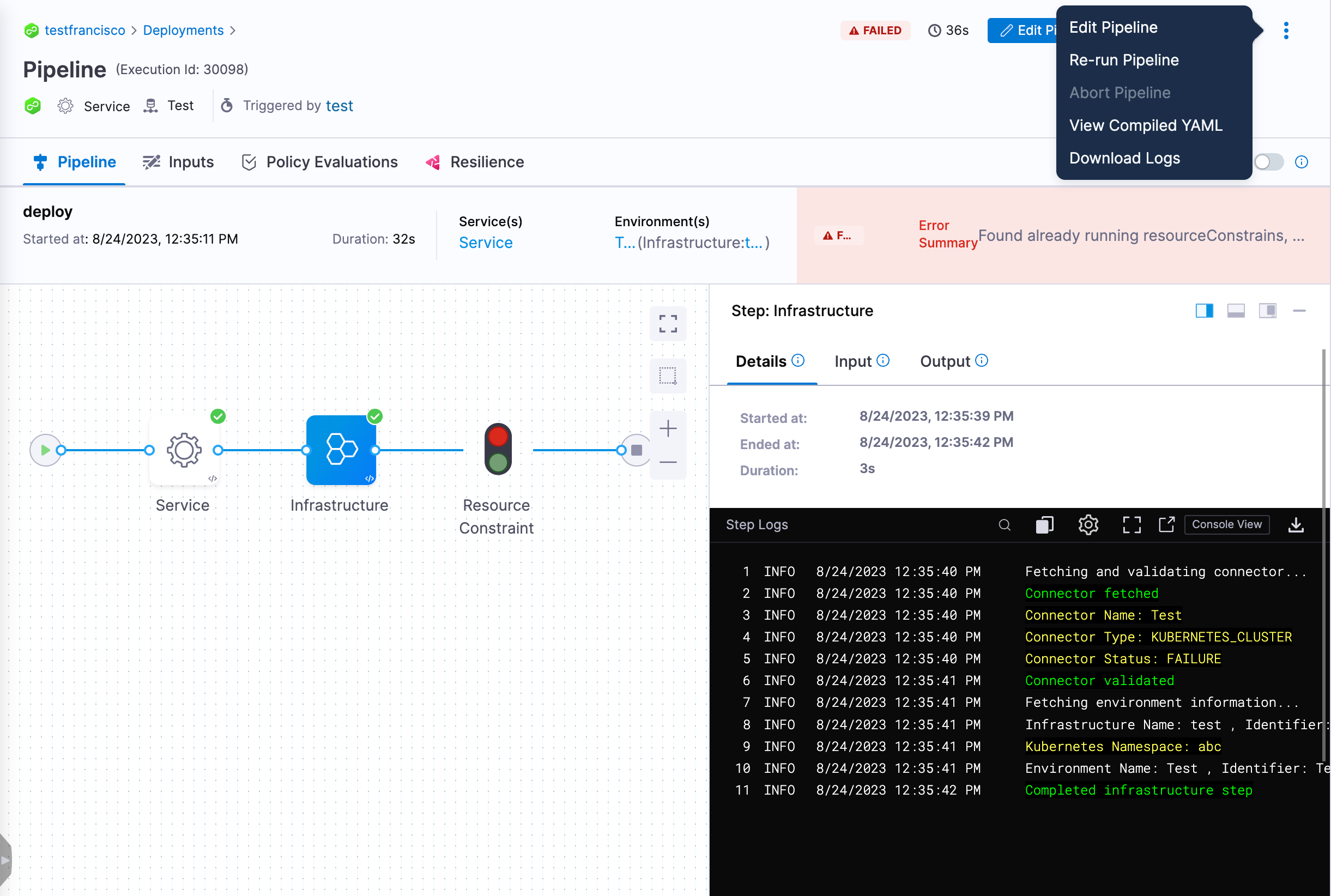 ACCOUNT_ID: Your Harness account identifier.PIPELINE_EXECUTION_PREFIX_KEY: A multi-part value consisting ofACCOUNT_ID/pipeline/PIPELINE_ID/RUN_SEQUENCE/-PLAN_EXECUTION_ID. For example,12345abcd/pipeline/My_Cool_Pipeline/12/-dfstsh.ACCOUNT_ID: Your Harness account identifier.PIPELINE_ID: The identifier of the pipeline that you want to get logs for.RUN_SEQUENCE: The incremental execution/build identifier of the specific pipeline run that you want logs for.-PLAN_EXECUTION_ID: A hyphen (-) followed by the identifier of the pipeline execution that you want to get logs for.